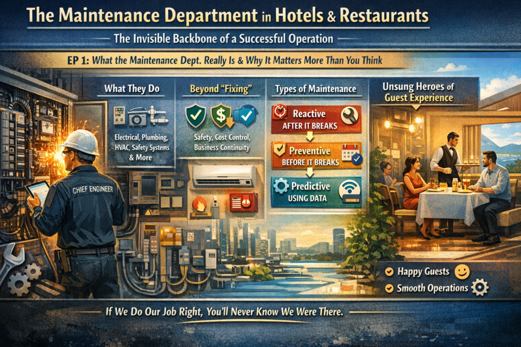 But behind all of these visible experiences lies a department that quietly keeps everything running — the Maintenance (or Engineering) Department.